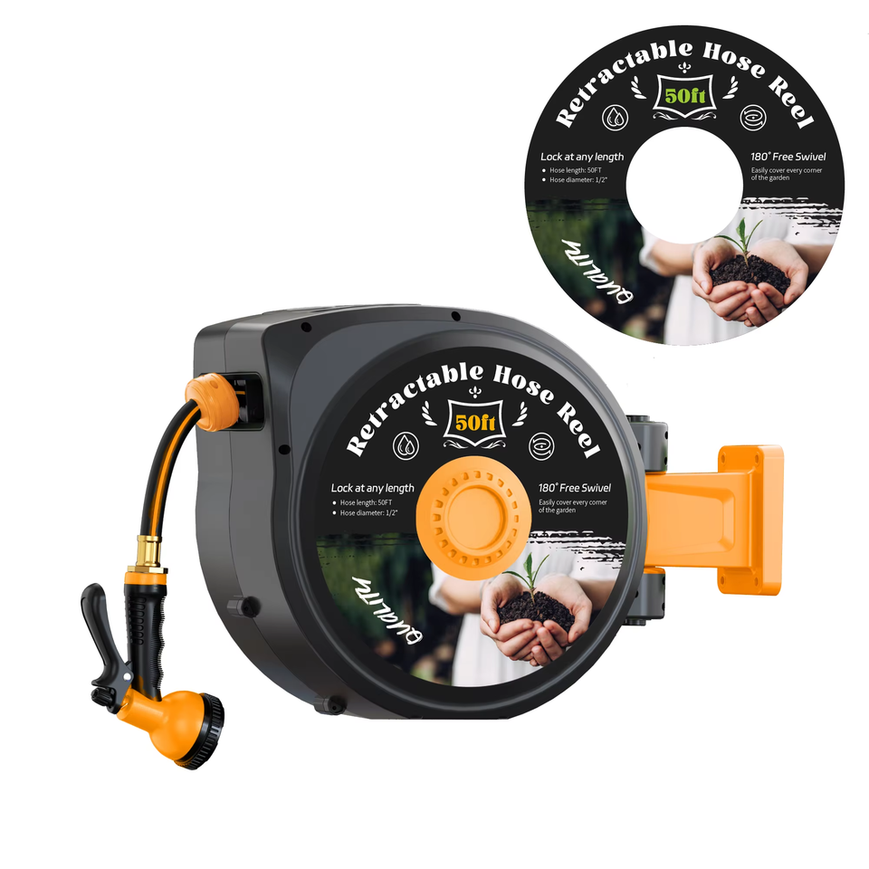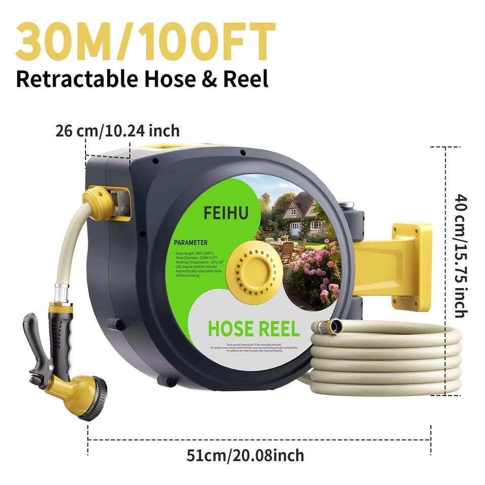 Best Selling 1/2 100FT Automatic Garden Hose Reel Wall Mount Retractable Garden Hose Reel with 10 Pattern Nozzle