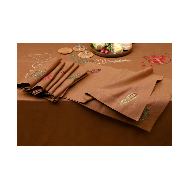 Best Selling 100% Cotton Embroidered Floral Beige Table Cloth 72x108 Inches Reusable Biodegradable for Seasonal Dining Woven