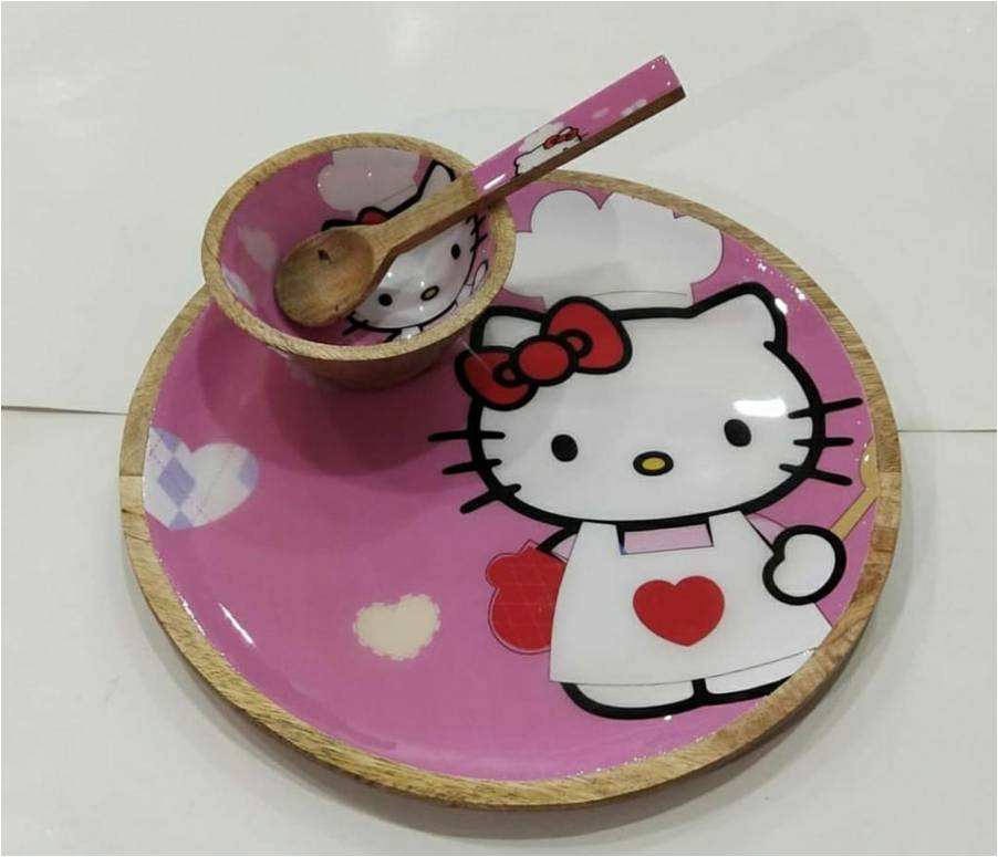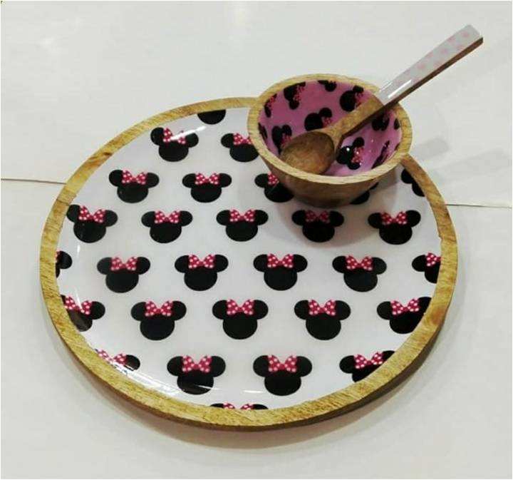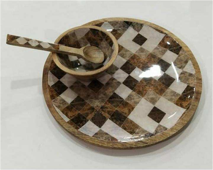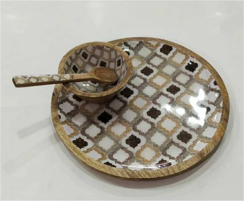 Best Selling 100% Food Safe Wooden with Enamel Coated Serving Bowl & Tray Made in Mango Wood with Spoon Natural & Enamel Finish