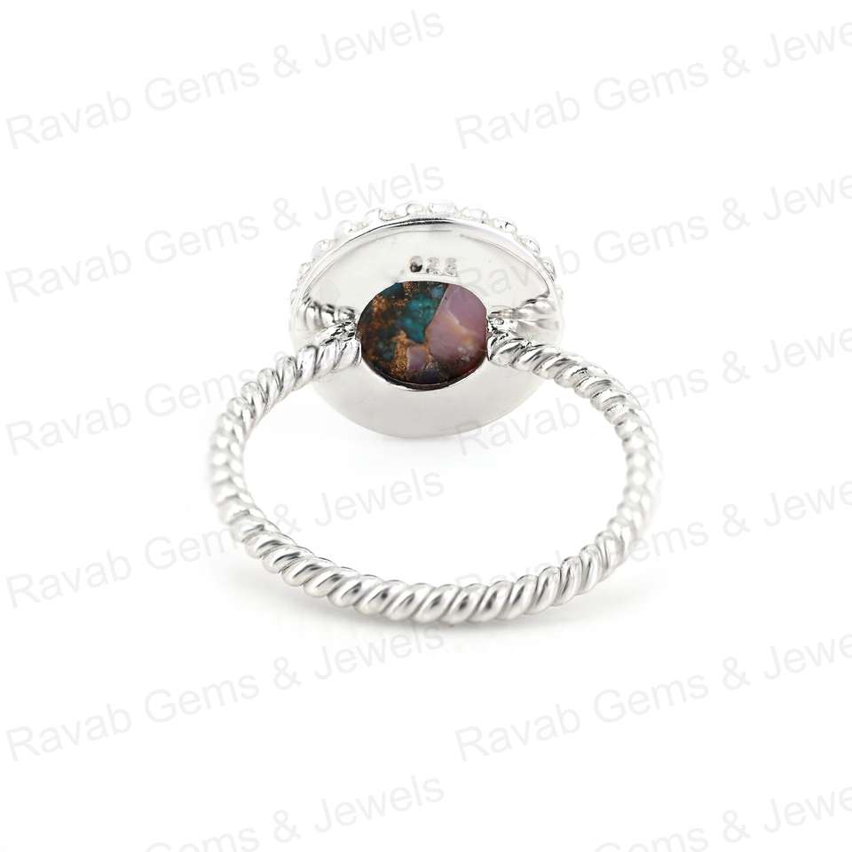 Pink Opal Copper Turquoise Sterling Silver Ring
