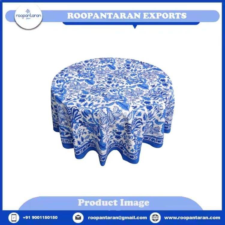 Best Selling 180 Cms Round Tablecloth Soft Cotton 20 Sheeting Floral Pattern for 6 Seater Dining Table for Daily Use Occasions