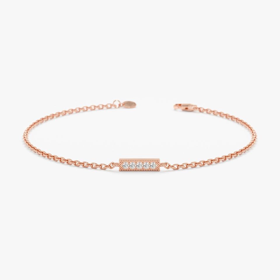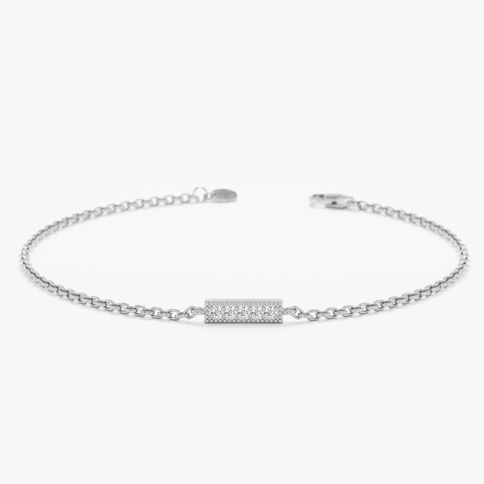 925 Silver Moissanite Diamond Rectangle Bar Minimalist Chain Bracelet