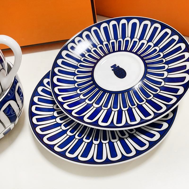 Best Selling 2 Cups Ceramic Nordic Blue Style Luxury Coffee Sets Living Room Sets Porcelain Tea Cups and Saucers