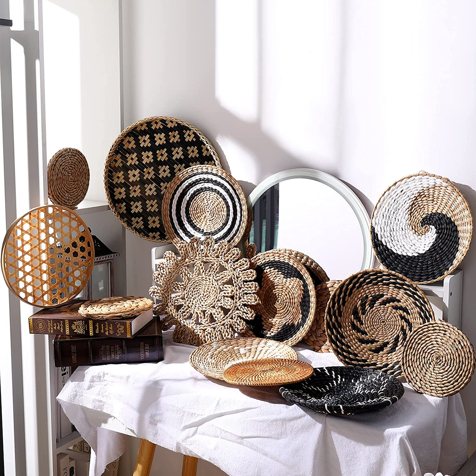 Best Selling 2023 Wholesale Round Wall Hanging Seagrass Bamboo Basket Decor Handmade in Vietnam for Home and Hotel Living Rooms