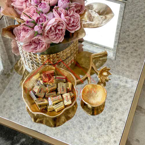 Best Selling 2025 Bowl With Glass Bowl on it Gold Finished Metal Bowl Set