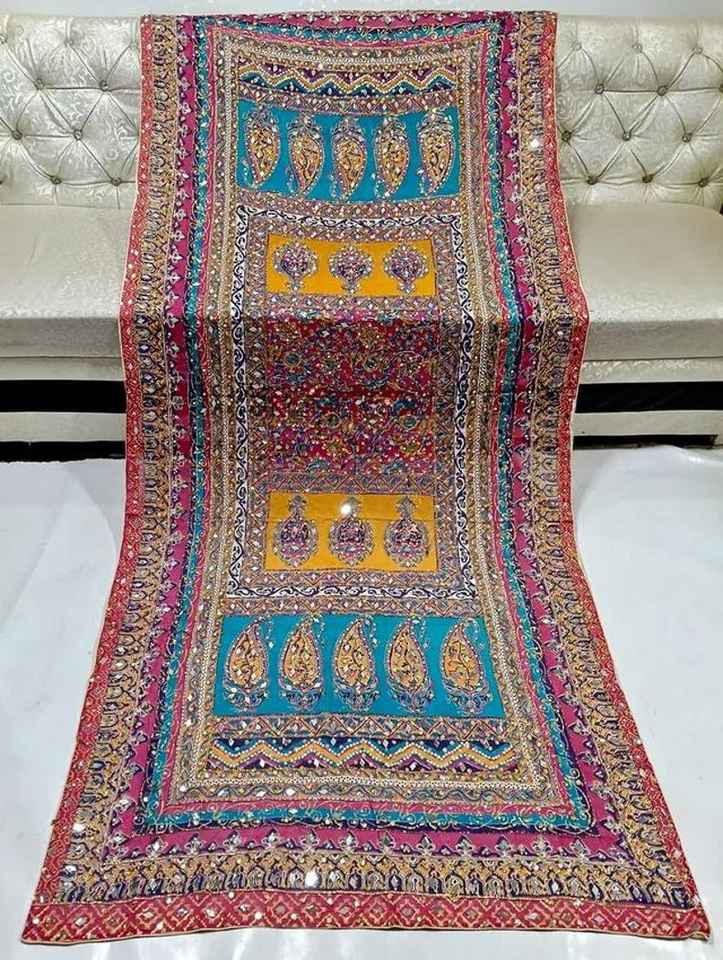 Best Selling 2026 Antique Banjara Mirror Work Kutch Women Shawls Custom Design Hand Embroidered Knitted Shawls OEM Service