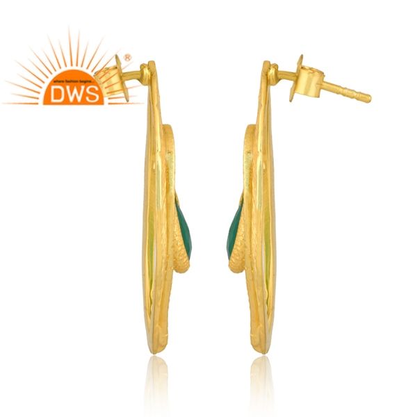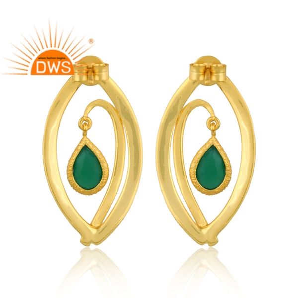 Best Selling 2026 Sterling Silver Natural Green Onyx Gemstone Stud Earring For Women Jewelry Manufacturer