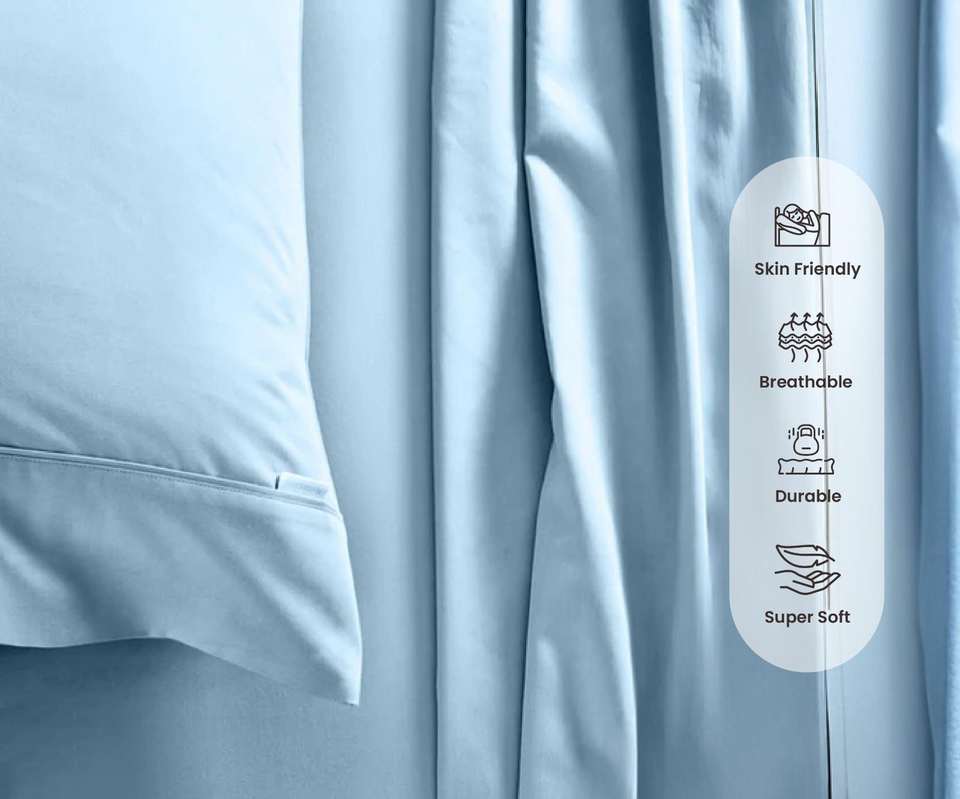 Best Selling 300 TC Queen Size Sheet Set 4 Piece Light Blue Soft Comfortable Fabric for Home Available In Bulk Quantity