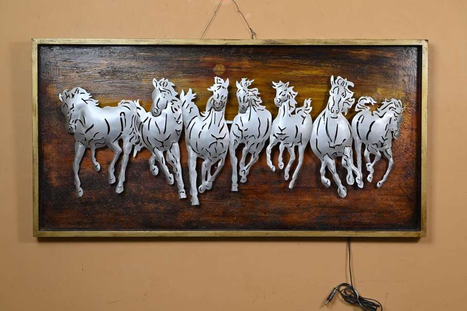 Best Selling 7 Horse Wall Panel for Hanging From India Metal Panel with Wooden Frame for Home Iron Wall Decor Art Ready to Hang
