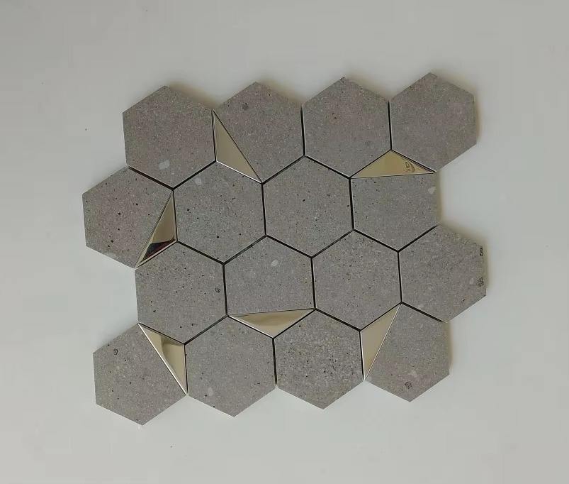 Best Selling 73Mm Hexagon Silver PVD Ceramic Mosaic Tile For Kitchen Backsplash And Bathroom Wall Available For Sale