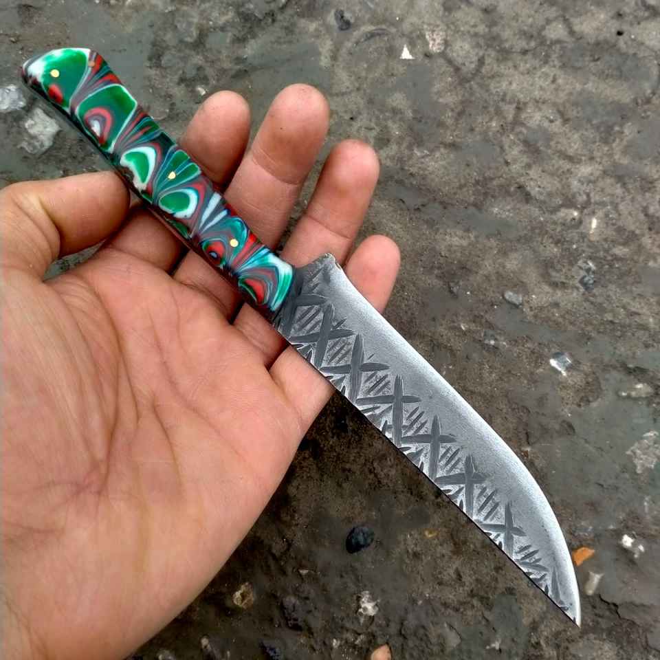 Best Selling 8inch 12rc Steel Professional Kitchen Chef Knife High Quality with Engraved Resin Handle Leather Sheath Included