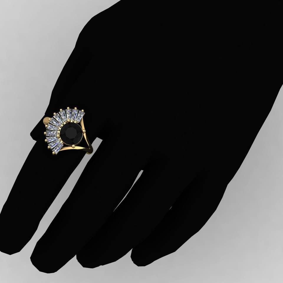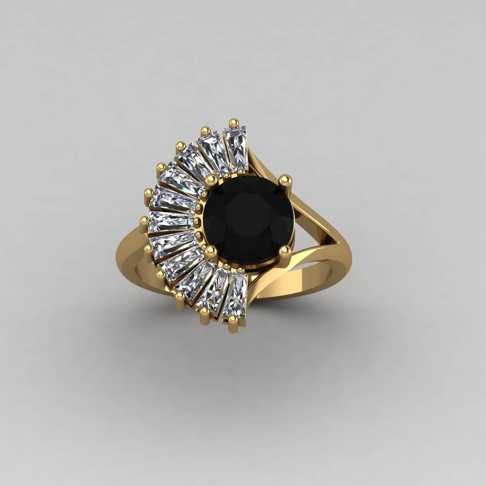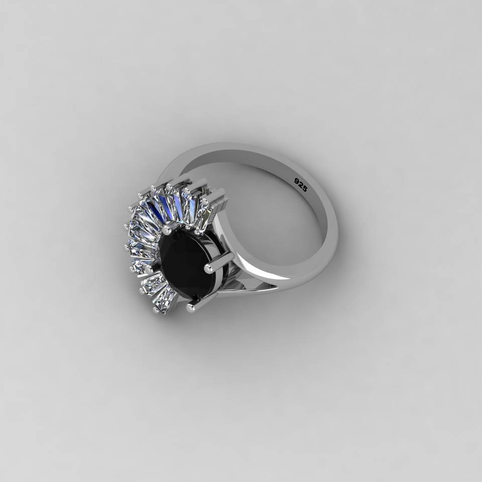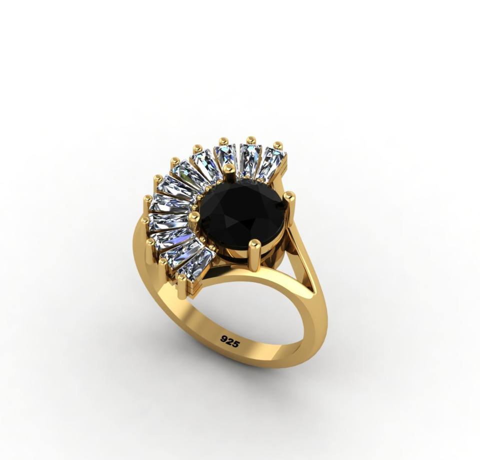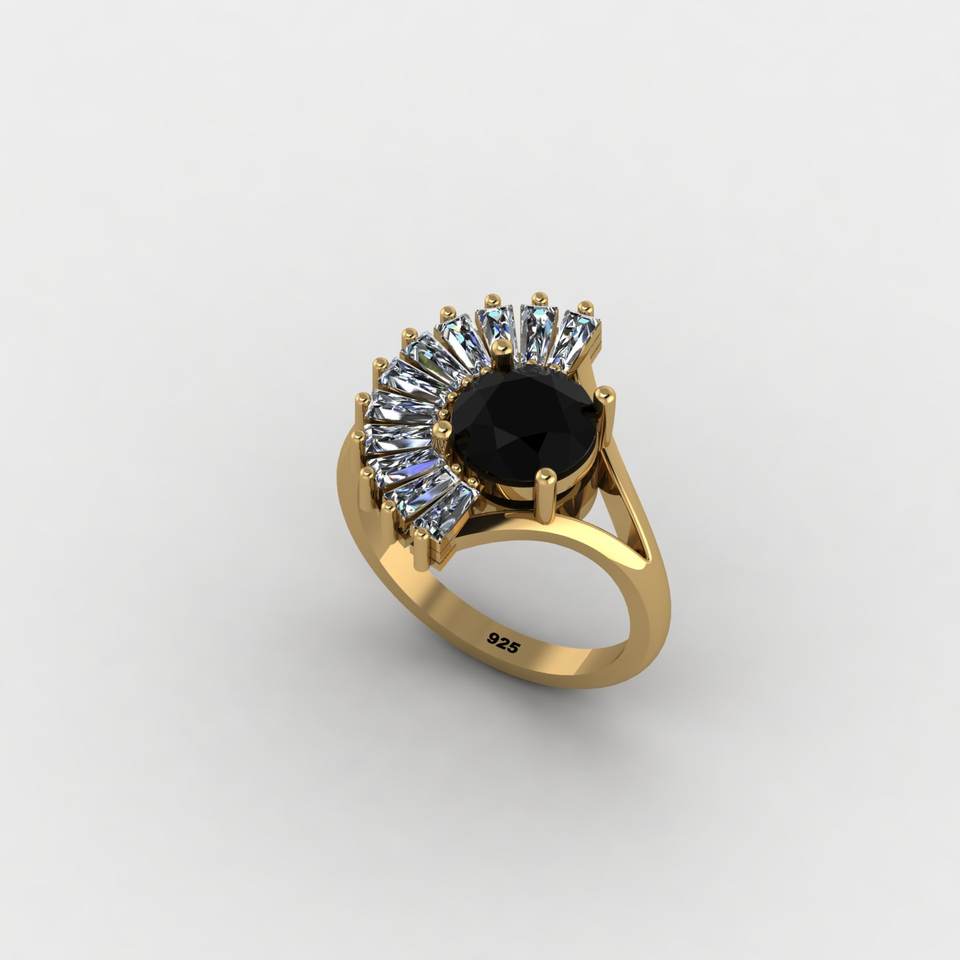 Best Selling 925 Silver 18k Gold Plated 8mm Crown CZ Baguette & Black Onyx Eternity Wedding Band Prong Set Designer Ring Women