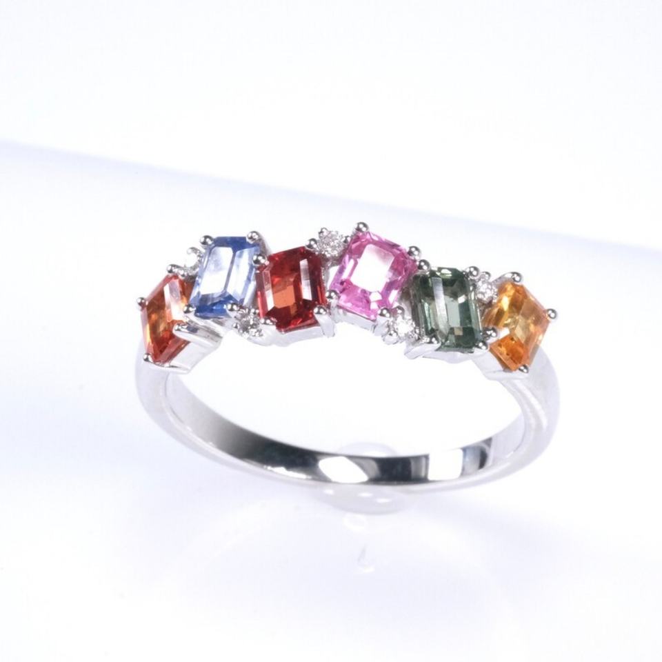 Best Selling 925 Sterling Silver 3x4mm Octagon Multi Rainbow Sapphire Wedding Ring Jewelry Cubic Zircon CZ Engagement Ring