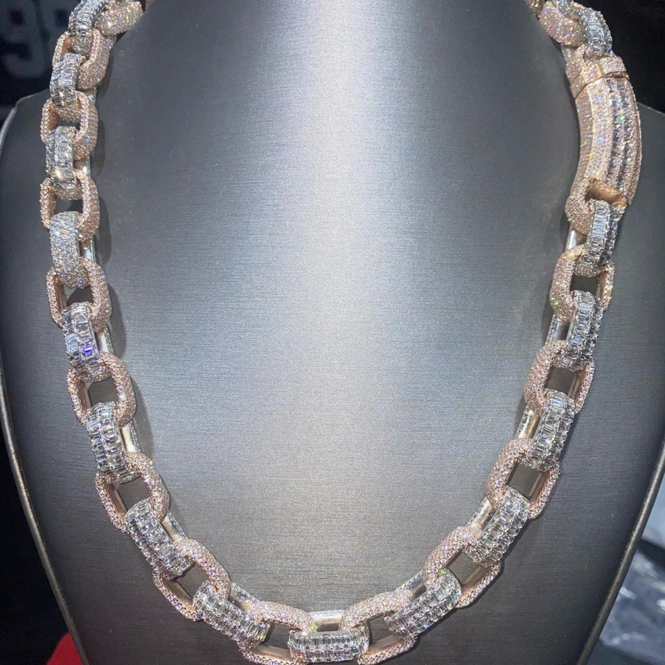 Best Selling 925 Sterling Silver Customized Iced Moissanite New Fashion 20MM Chain Classic Style 24K Gold Plated