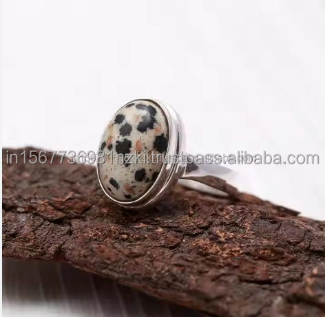Best Selling 925 Sterling Silver Dalmatian Jasper Ring for Women Rhodium Plated Oval Statement Ring Elegant Jasper Jewelry