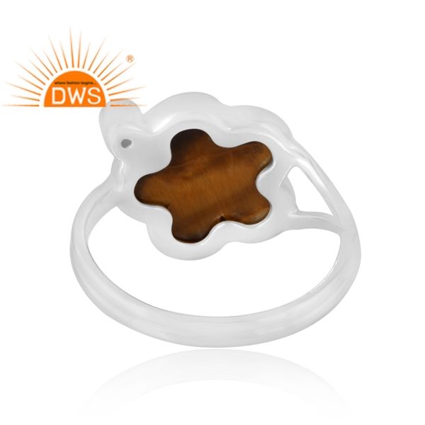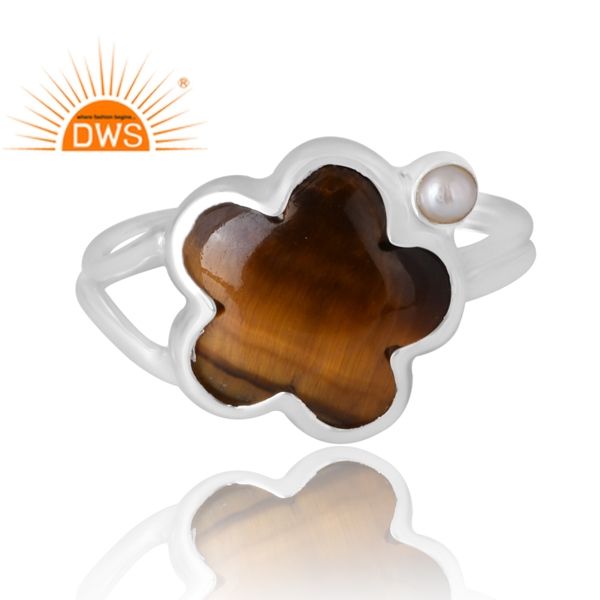 Best Selling 925 Sterling Silver Natural Tiger Eye Yellow & Pearl Gemstone Ring Custom Jewelry For Women Gift For Her
