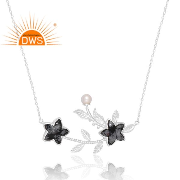 Best Selling 925 Sterling Silver Natural Snowflake Obsidian & Pearl Gemstone Pendant Custom Jewelry For Women Gift For Her