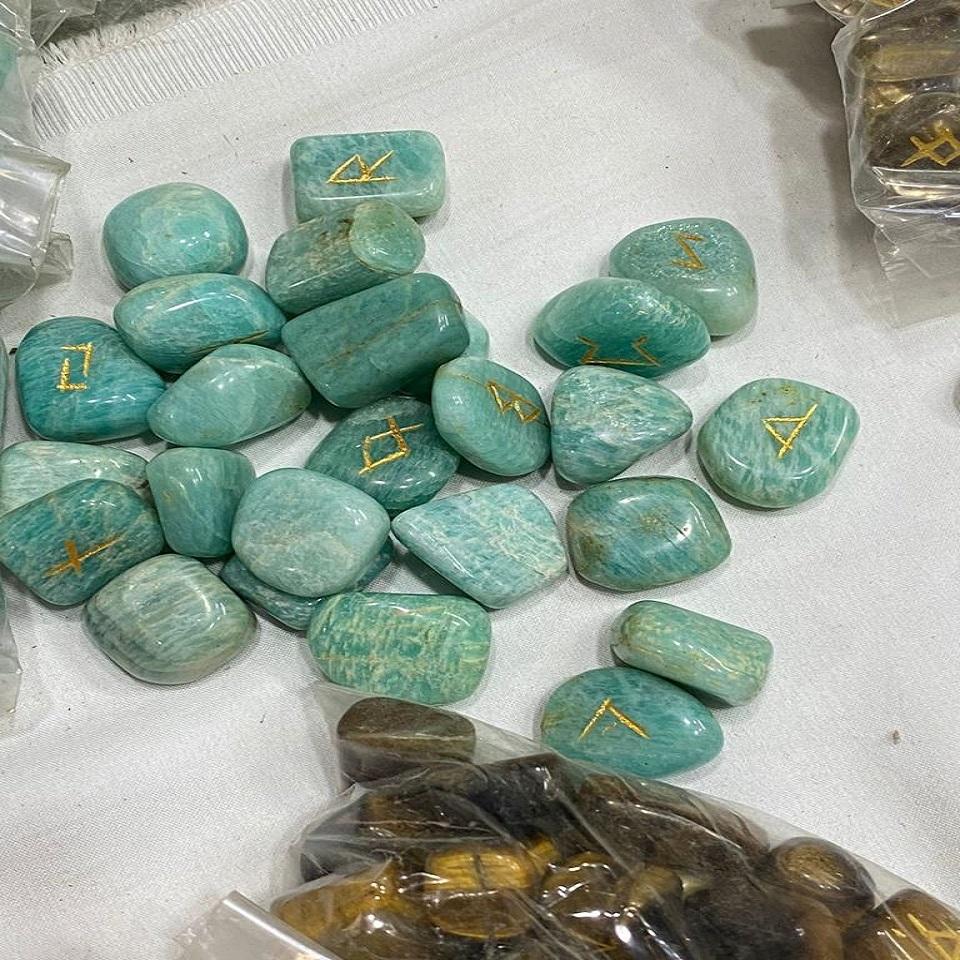 Best Selling Amazonite Rune Set High Quality Carved Agate Gemstone Reiki Set Semi-Precious Stone Crafts for Feng Shui Engraving