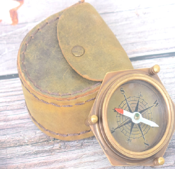 Best Selling Antique Brass Sundial Compass Nautical Style Leather Cover Pouch Traditional Polished Metal Crafts Gifts