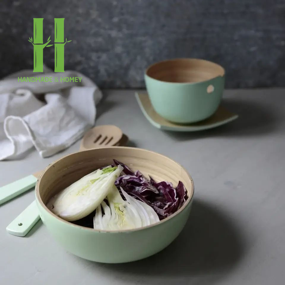 Best Selling Bamboo Salad Serving Bowls Wholesale Tableware Bowl Plate OEM Colors Sizes Custom Packaging From Vietnam Handmade