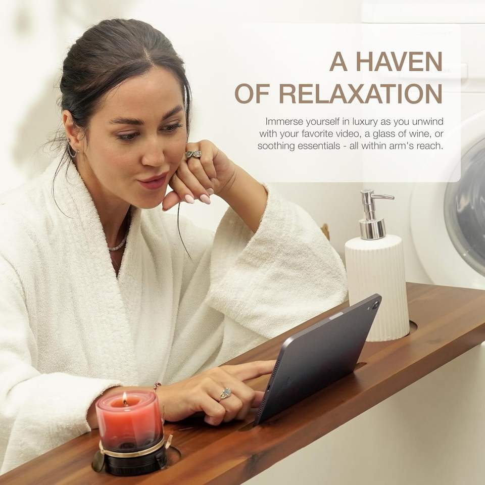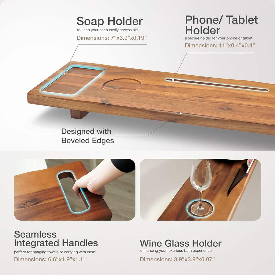 Best Selling Bathroom Sets Bamboo Bathtub Rack Beige Color Bath Caddy Tray for Bathtub Vietnam Wholesale Supplier