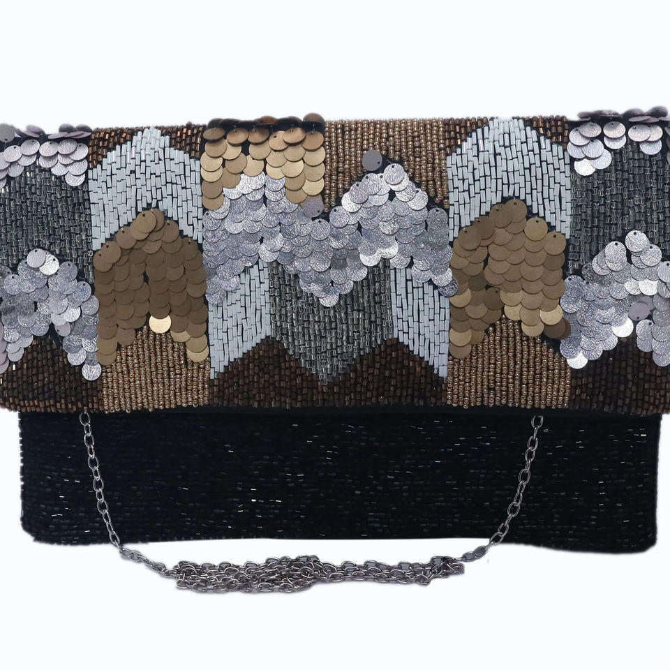 Best Selling Beautiful Design Black & Golden Color Sequin Clutch Purses Handbags for Women Partywear Accessories