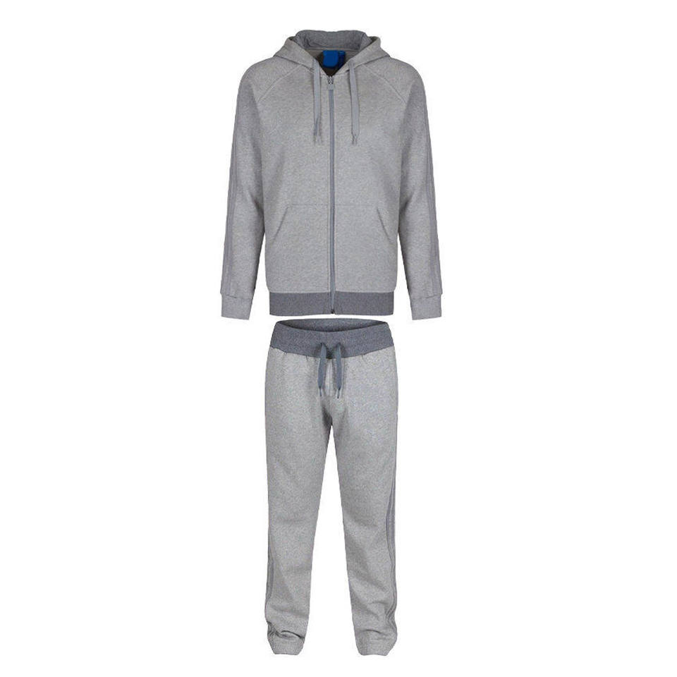 Best Selling Black and Grey Fleece Lined Tracksuit Set Winter Full Zip Hoodie and Joggers with Solid Pattern Hooded Collar