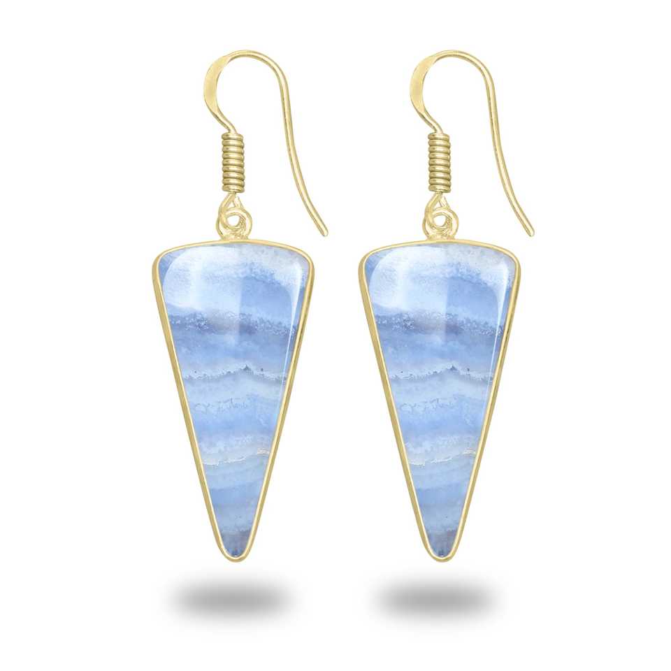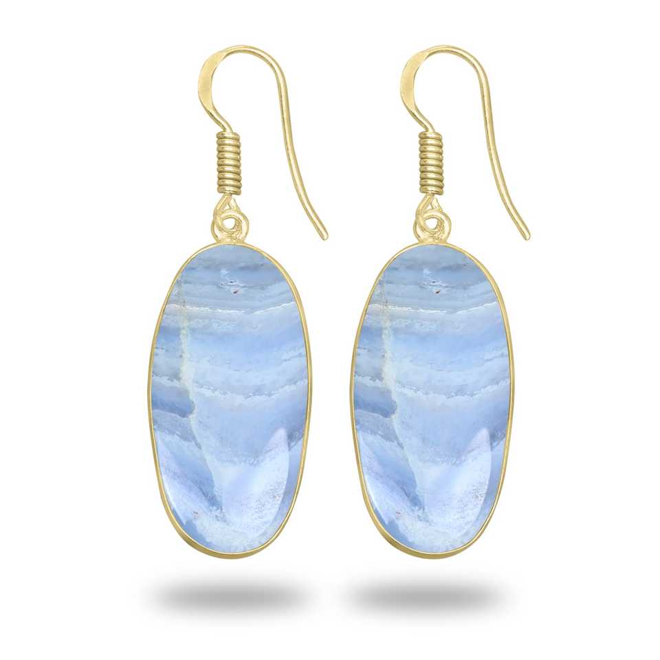 Best Selling Blue Lace Agate Gemstone Earrings Minimalist Handmade Fine Bulk Women Jewelry Exporter 18K Gold-Plated Earring