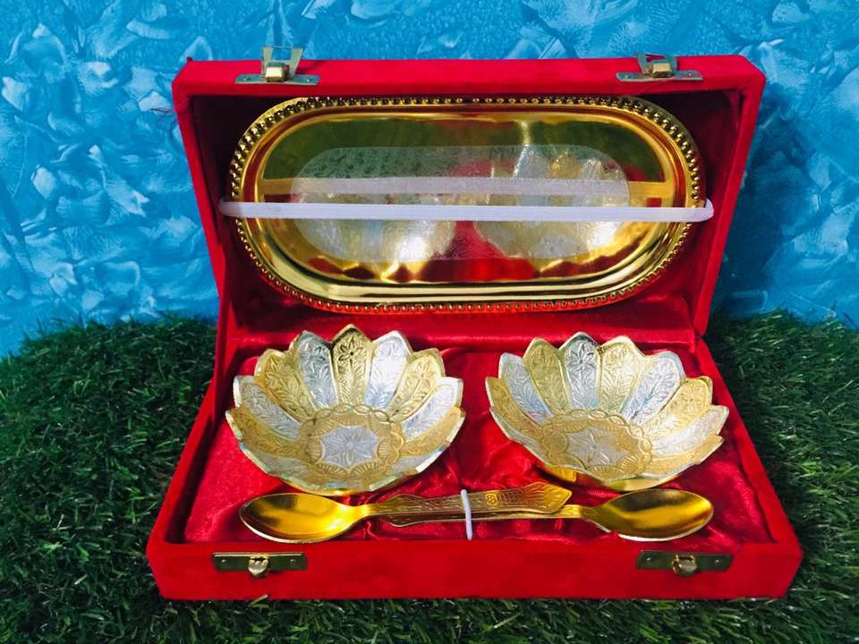 Best Selling Brass Bowl Set With Tray & Spoons Gold Style Metal Bowl & Spoon Set Attractive