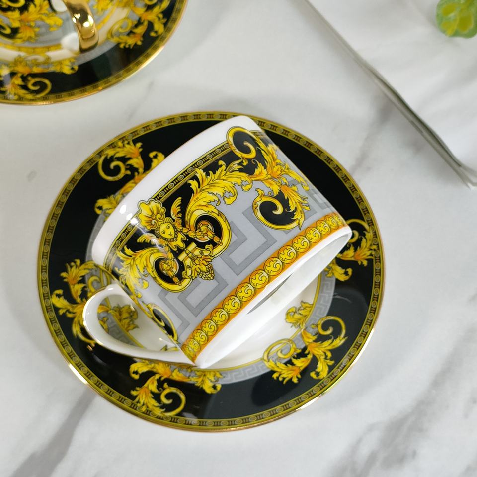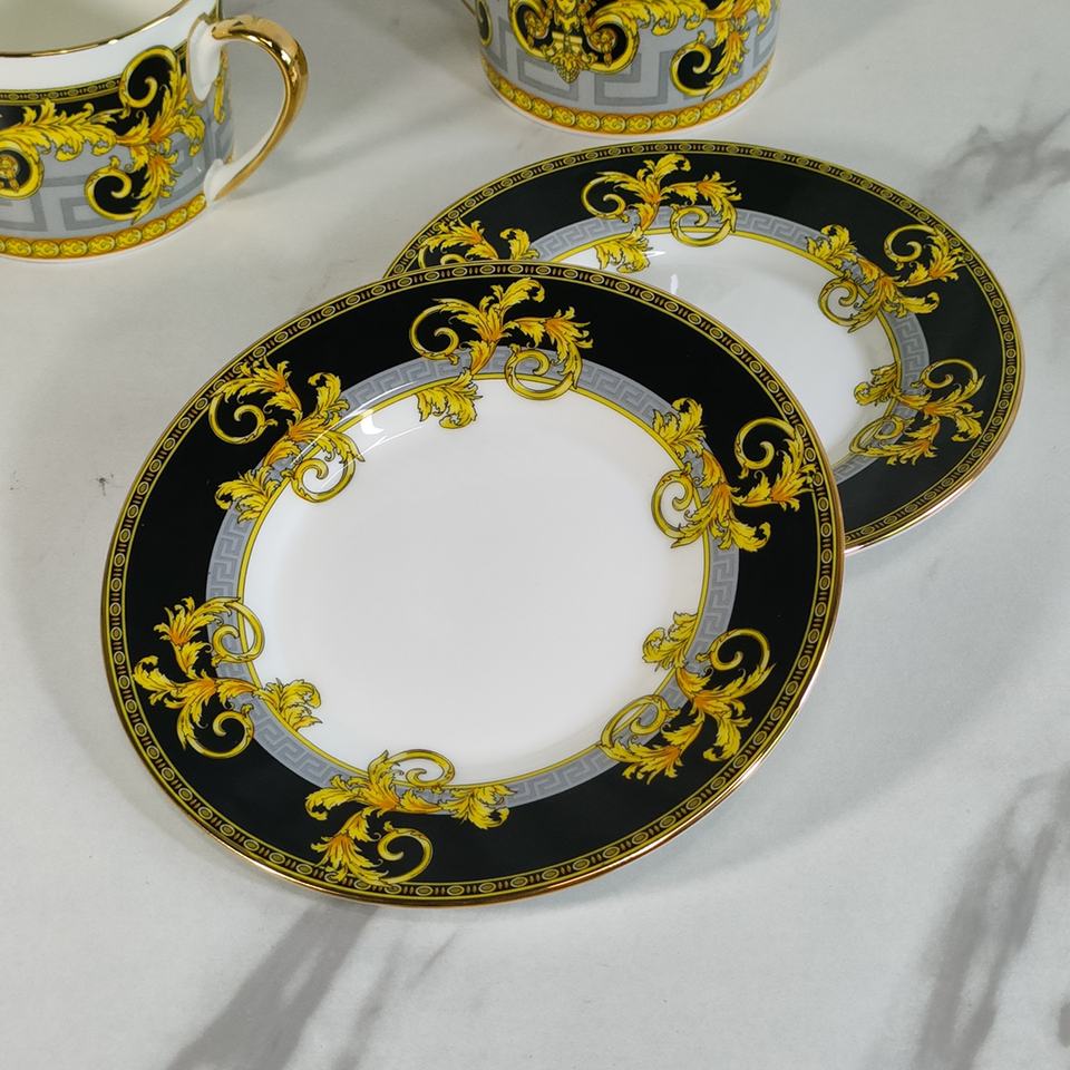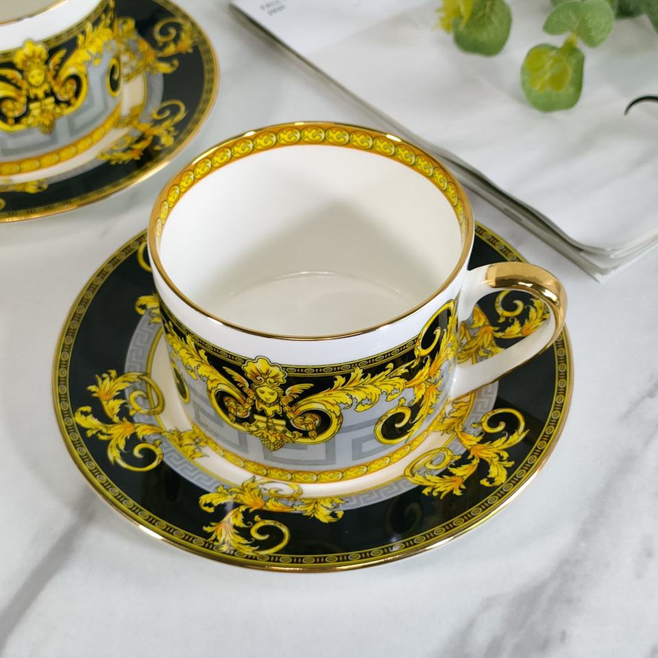 Best Selling British Luxury Gold and Black Gold Dining Room Set Slanted Ceramic Cups and Saucers