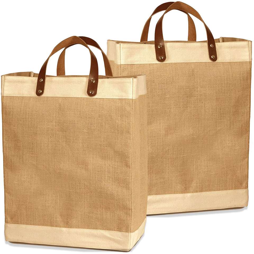 Best Selling Burlap Jute Tote Bag With Coustmoize Logo Print and With Leather Handle Strap