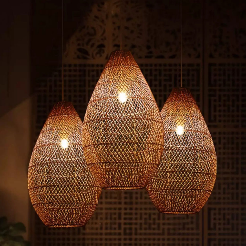 Best Selling Aesthetic Elegant Handwoven Wicker Pendant Lights Chinese Eco-Friendly Living Room Bedroom Rustic Rattan Coastal