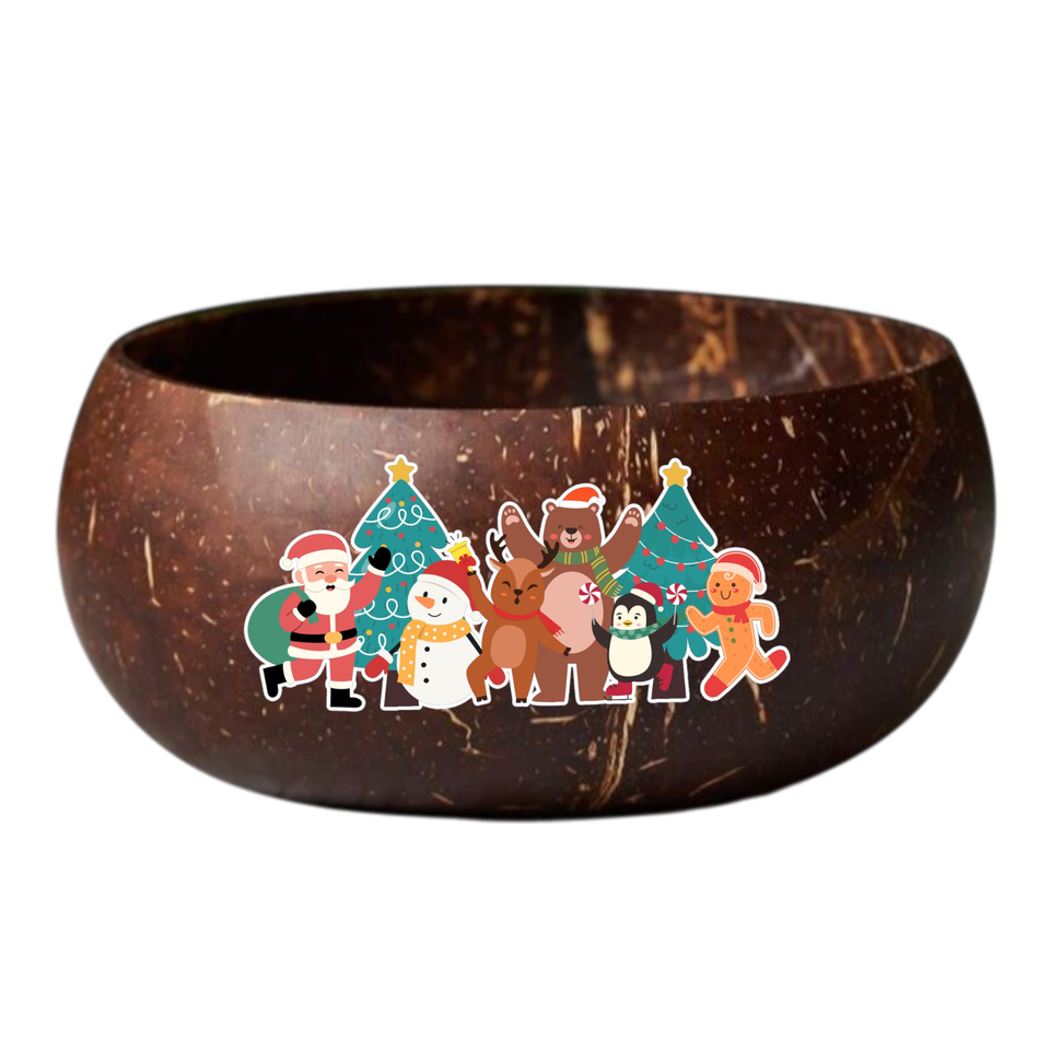 Best Selling Christmas Printed Coconut Bowl Eco-Friendly 3D Coconut Shell Bowl for Table Decor - Unique Festive Serving Dish