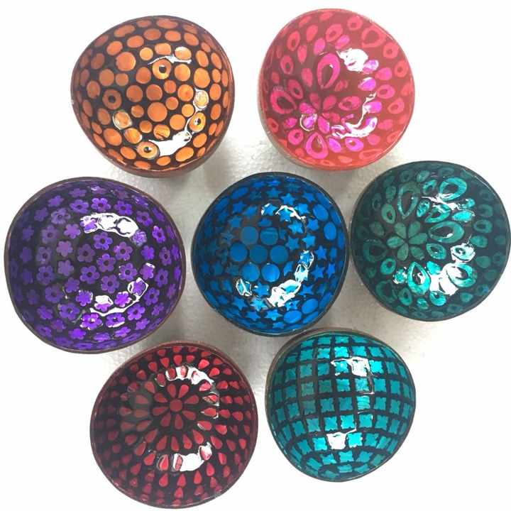 Best Selling Coconut Shell Bowl Colorful Egg-Style Seashell Tableware Hand-Carved Decoration From Vietnam-HT58198