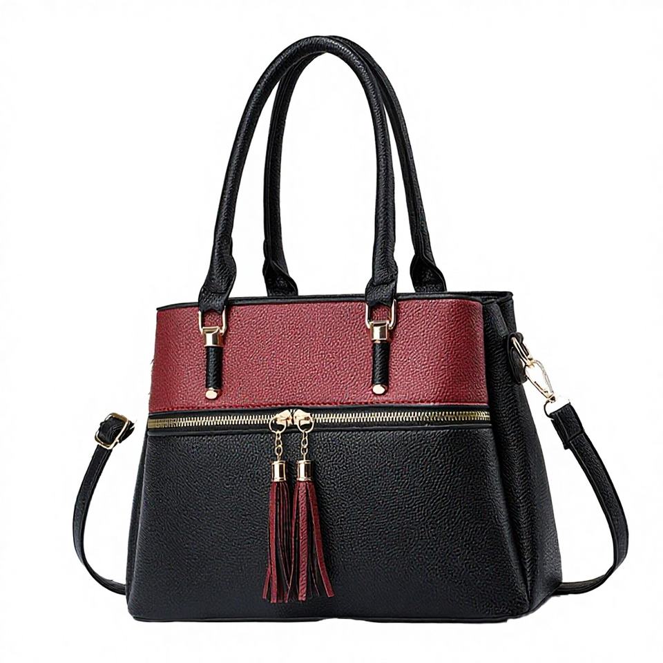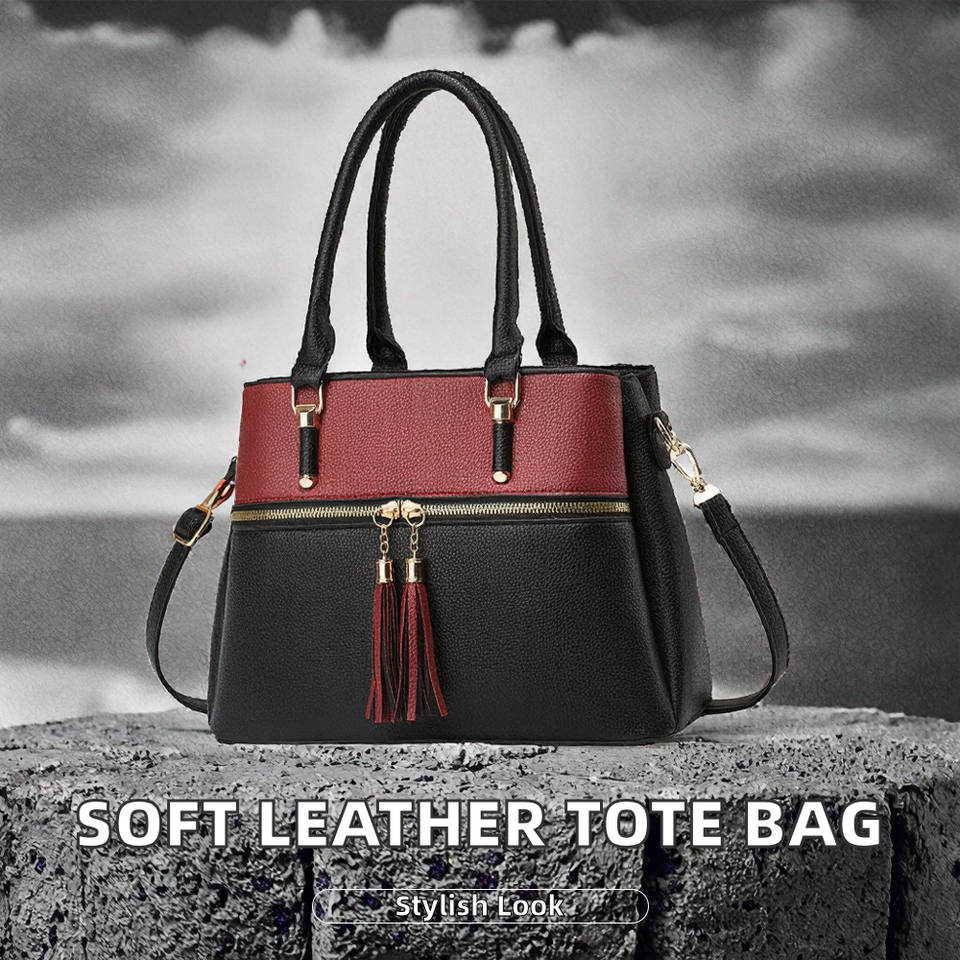 Best Selling Color Matched Large Capacity Tote Bag Soft PU Leather Fringes Single Shoulder Cross Body Zipper Polyester Bohemian