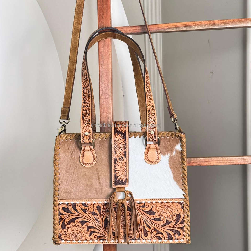 Best Selling Custom Design Hand Tooled Leather Tote Bags for Women Oversized Cowhide Handbags for Travel Shopping & Daily Life