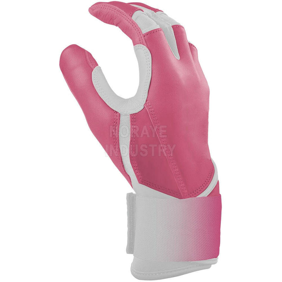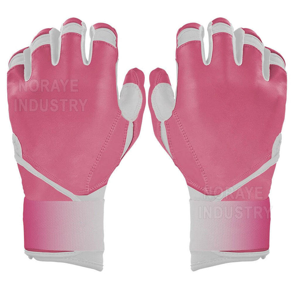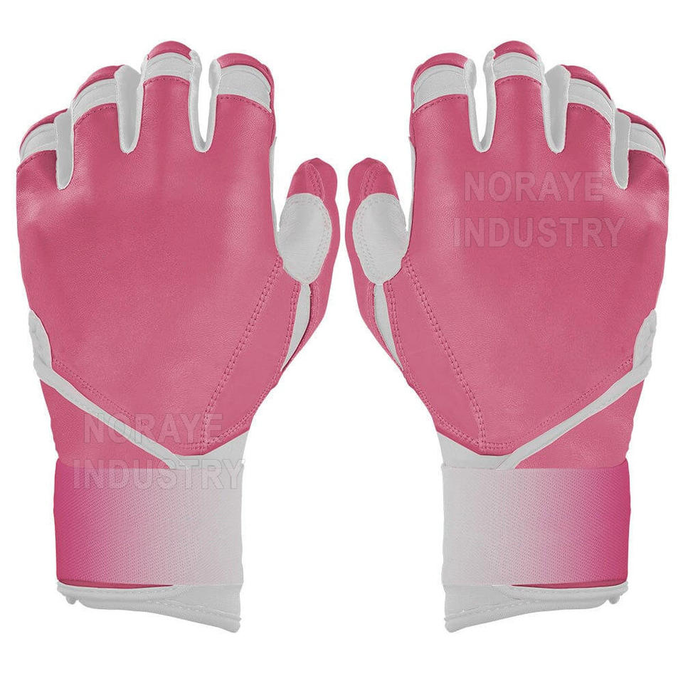 Best Selling Customized Pink White Leather Long Cuff Durable Breathable Waterproof Baseball Batting Gloves for Balls