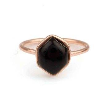 Best Selling Dainty Hexagon Design 12mm Natural Black Onyx Gemstone Ring Rose Gold Plated Sterling Silver Jewelry for Women
