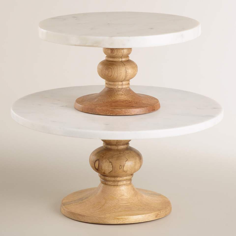 Best Selling Decorative White marble top wooden base cake stand cupcake holder modern customized marble & wood cake stand