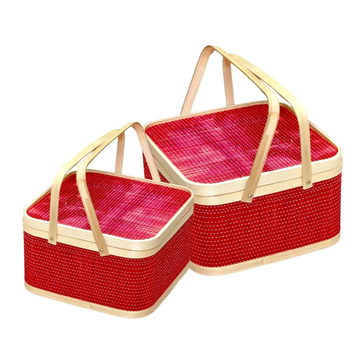 Best Selling Design BAMBOO GIFT BASKET with Lid and 2 Handles Custom Color Available Wicker Crafts for Packaging Vietnam Crafts