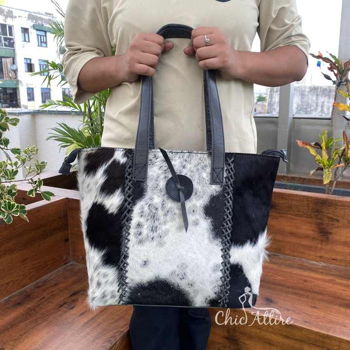 Best Selling Designer Women's Cowhide Fur Leather Tote Bag Multi-Use Stylish Purse with Custom Logo New Arrival Zipper Closure