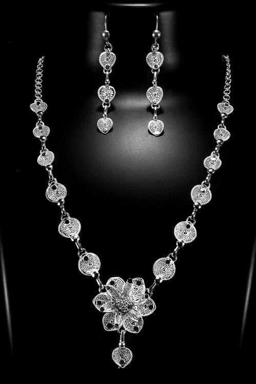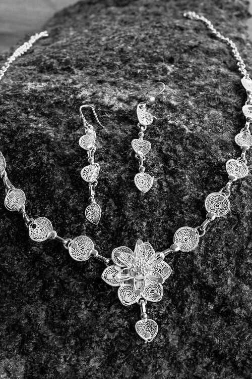 Product Name:Silver Linings Blossom Silver Filigree Handmade Necklace Set