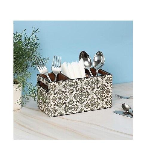 Best Selling Double-Tiered Cutlery Holder Square Wooden Printed Spoon Fork Storage High Quality Home Tableware Kitchen Use