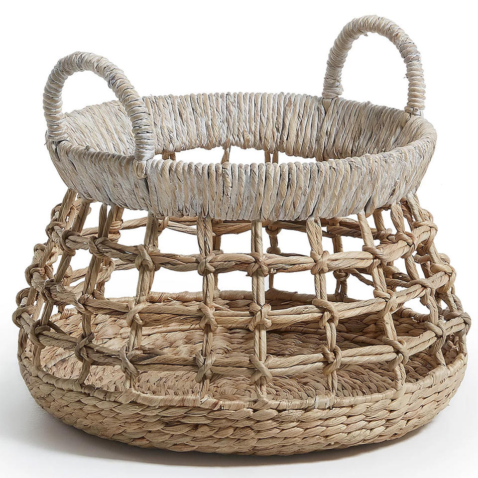 Best Selling Eco-Friendly Multifunction White Wash Storage Basket with Handle Mixed Straw Water Hyacinth Handcrafted Vietnam