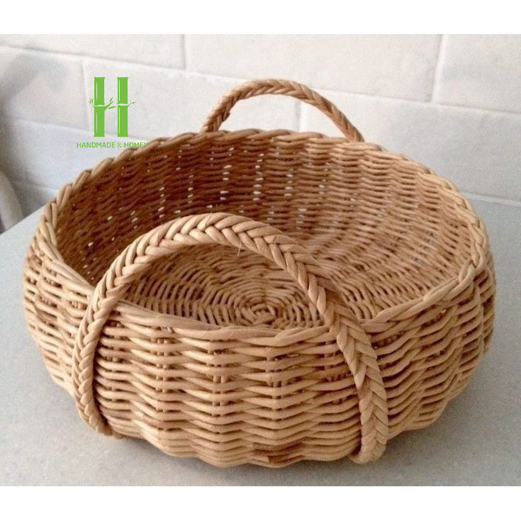 Best Selling Eco-Friendly Rattan Round Scalloped Serving Tray with Handle for OEM Dishes Plates Table Decoration From Vietnam