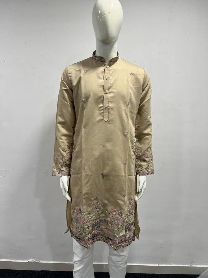 Best Selling Embroidered Heavy Linen Cotton Men Kurta Payjama Set For Wedding Festival Traditional Wear For Men Boys Wear