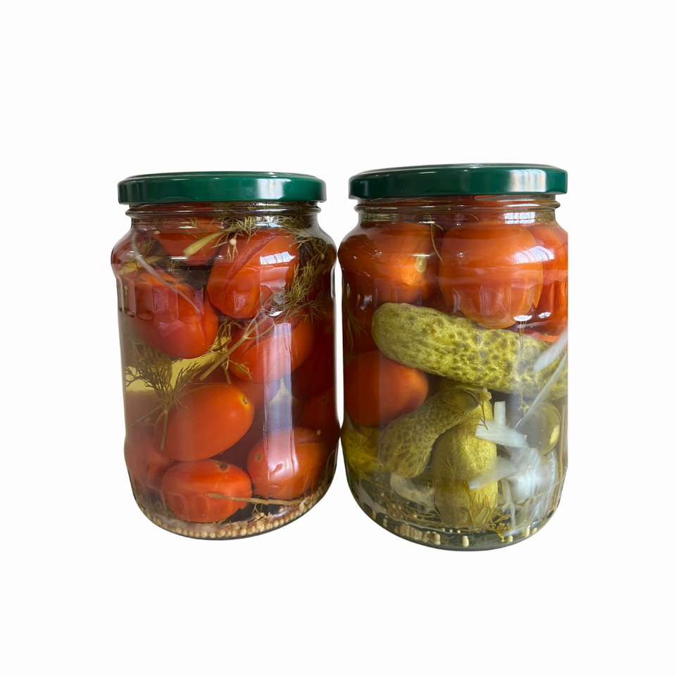 Content:Pickled cucumbers & tomatoes in vinegar 720ml