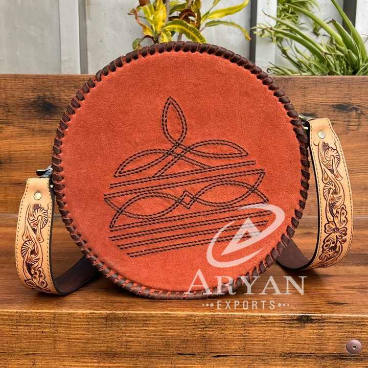 Product name:Hand Tooled Suede Leather Canteen Bag