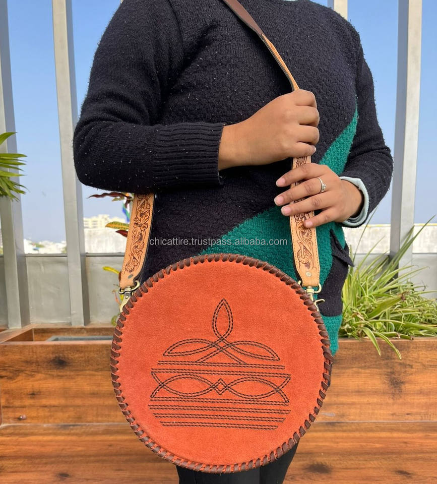 Product name:Hand Tooled Suede Leather Canteen Bag