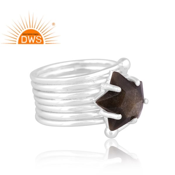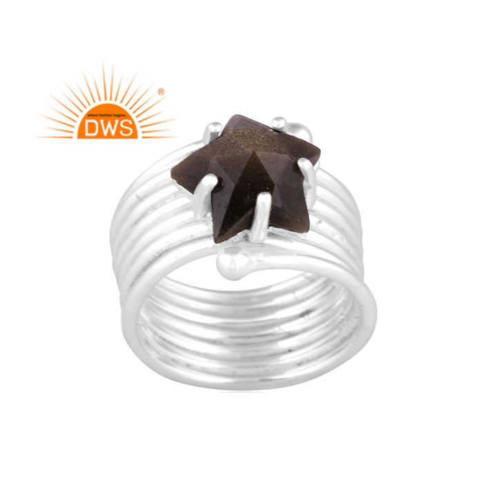 Best Selling Fine Sterling Silver Natural Gold Sheen Obsidian Gemstone Star Design Spiral Ring Custom Jewelry Manufacturer